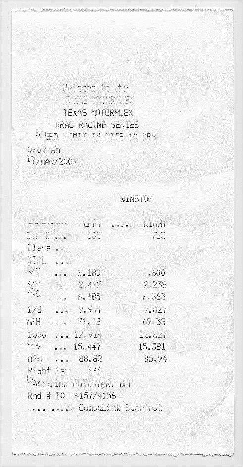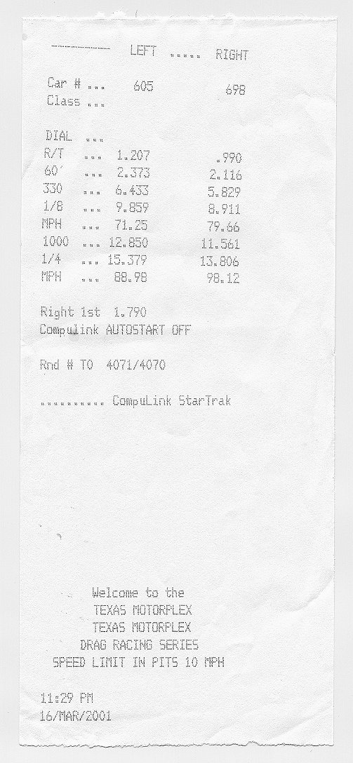 Every Friday is Street Night at the Texas Motorplex, so just about all you see out there are Mustangs and F-Bodies. There were about 4 other R/Ts there this Friday though.